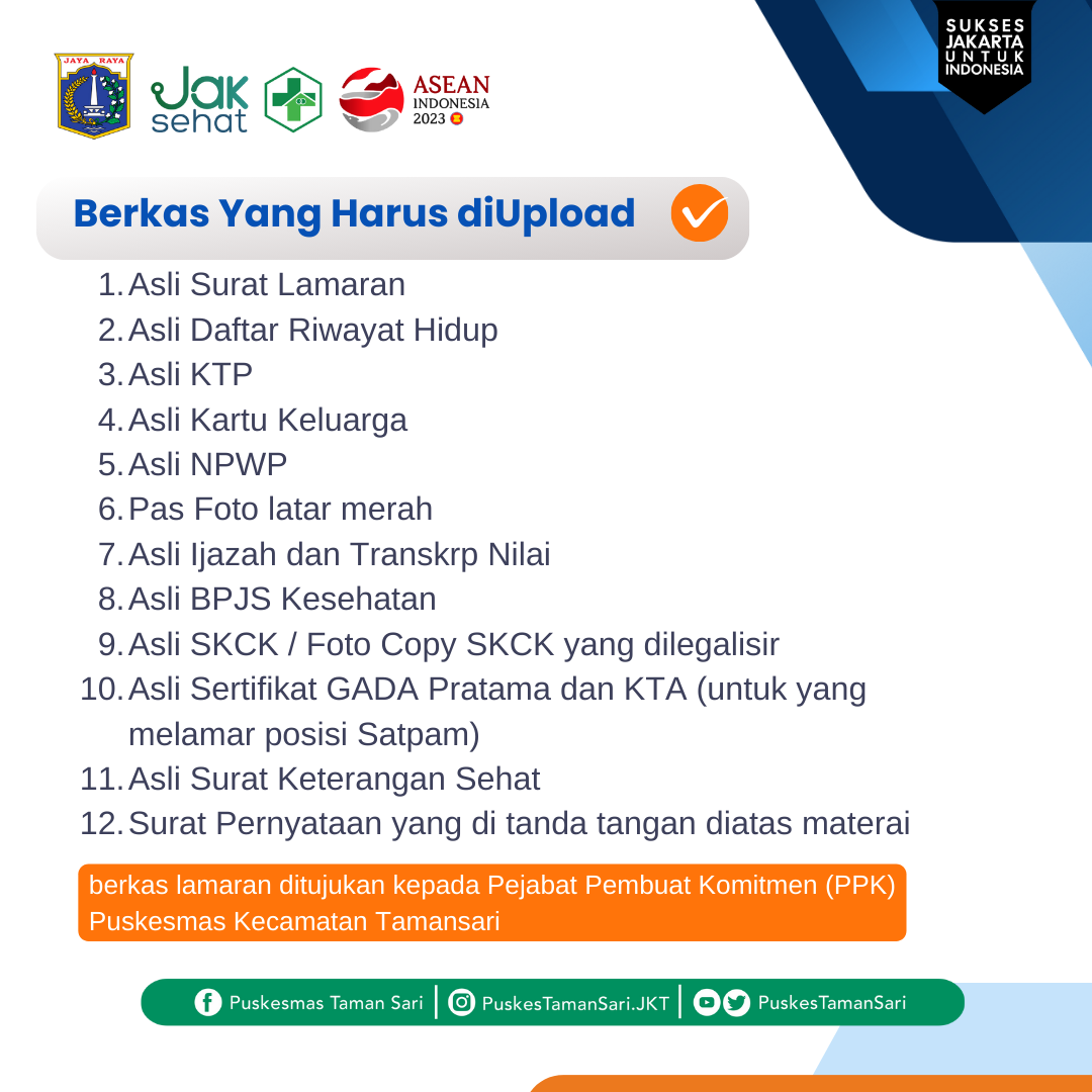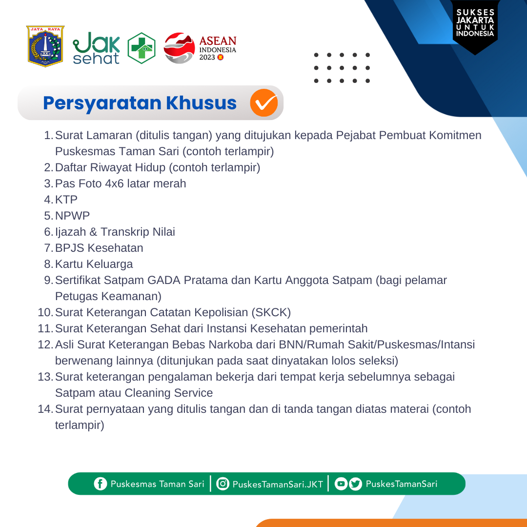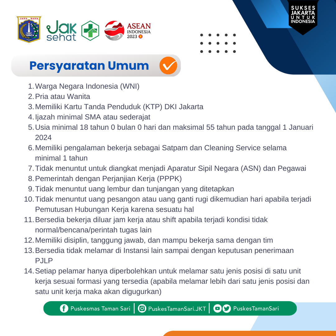 LOWONGAN PEKERJAAN PETUGAS KEBERSIHAN DAN PETUGAS KEAMANAN TAHUN 2024 PUSKESMAS TAMANSARI