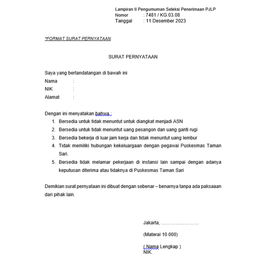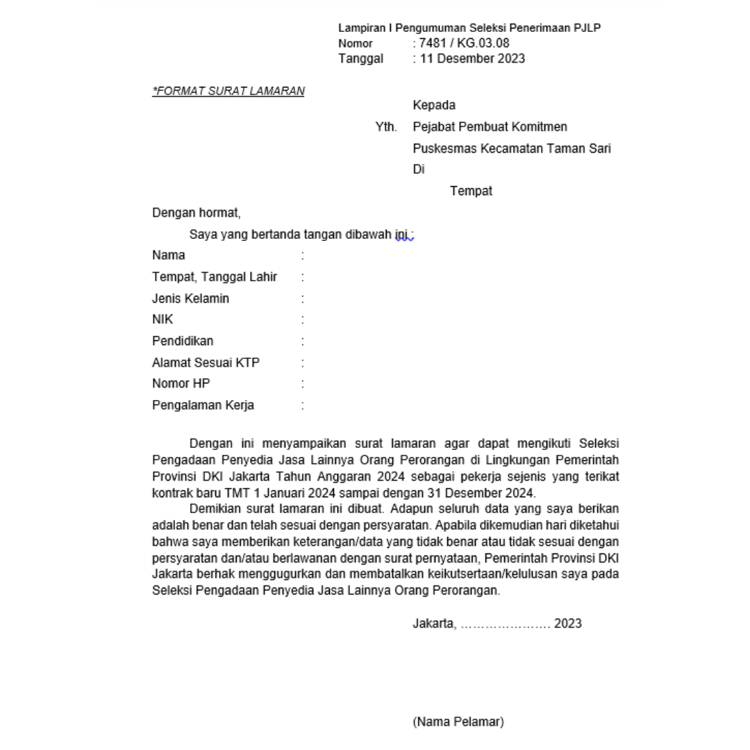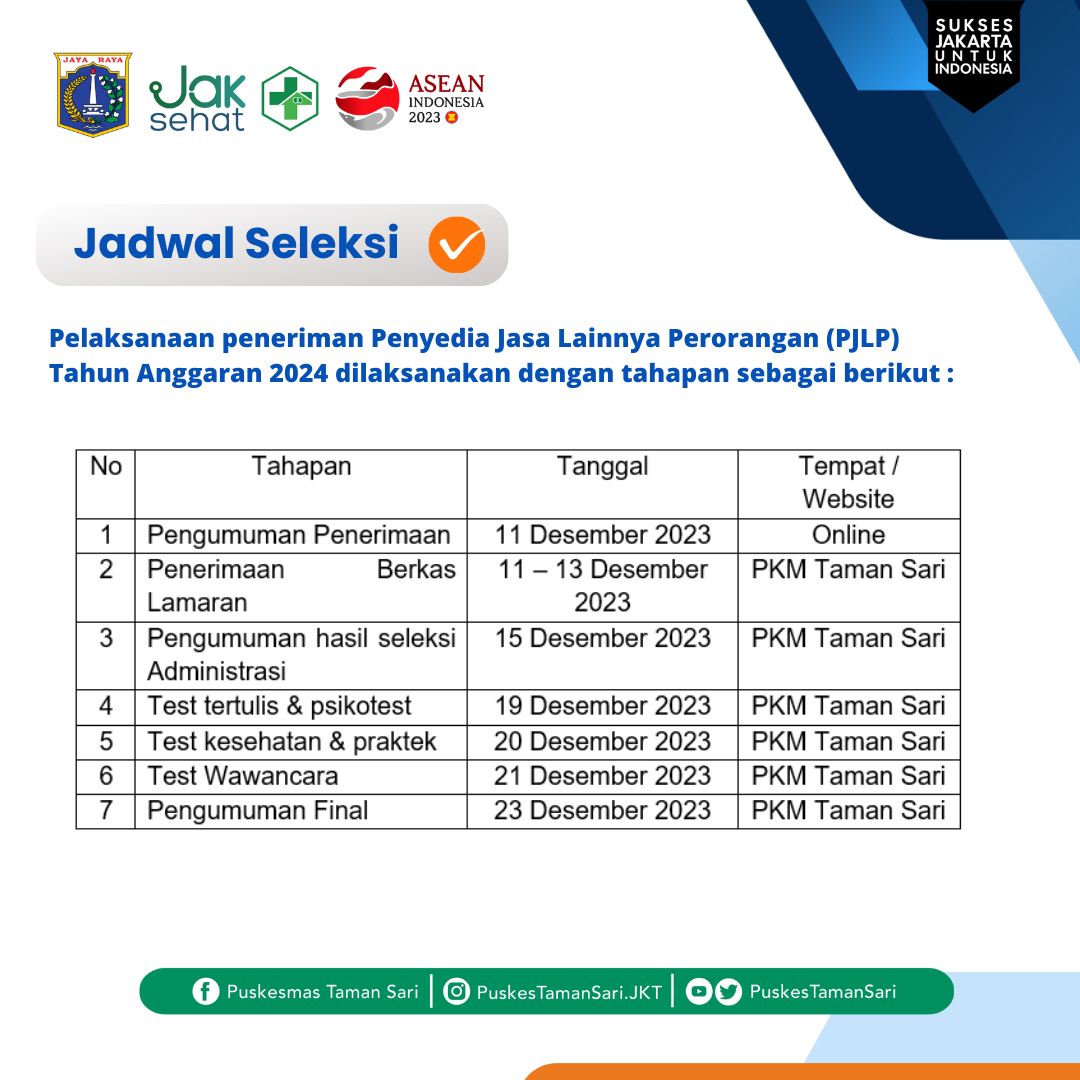 LOWONGAN PEKERJAAN PETUGAS KEBERSIHAN DAN PETUGAS KEAMANAN TAHUN 2024 PUSKESMAS TAMANSARI